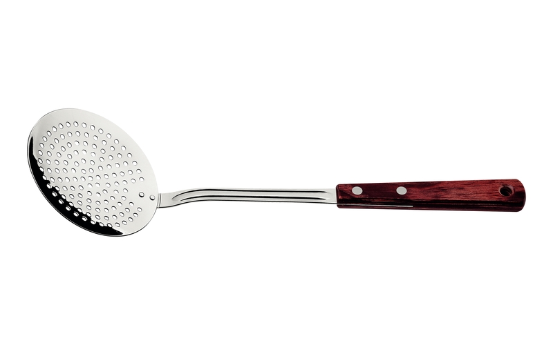 Com a escumadeira Tramontina com lâmina em aço inox e cabo em madeira tratada Polywood vermelho você tem o auxiliar ideal para preparar aquela batata-frita crocante ou aqueles pastéis bem recheados para toda a sua família. Produzida para agregar qualidade e eficiência em sua cozinha, ela tem lâmina em aço inox, cabo de madeira tratada Polywood e é fixado por rebites de alumínio. Devido a essas características, ela é altamente durável, resistente à impactos e altas temperaturas, e oferece maior beleza e estilo para sua cozinha. Chega de passar trabalho na hora de cozinha e fazer frituras, para isso, conte com os utensílios Tramontina Polywood!